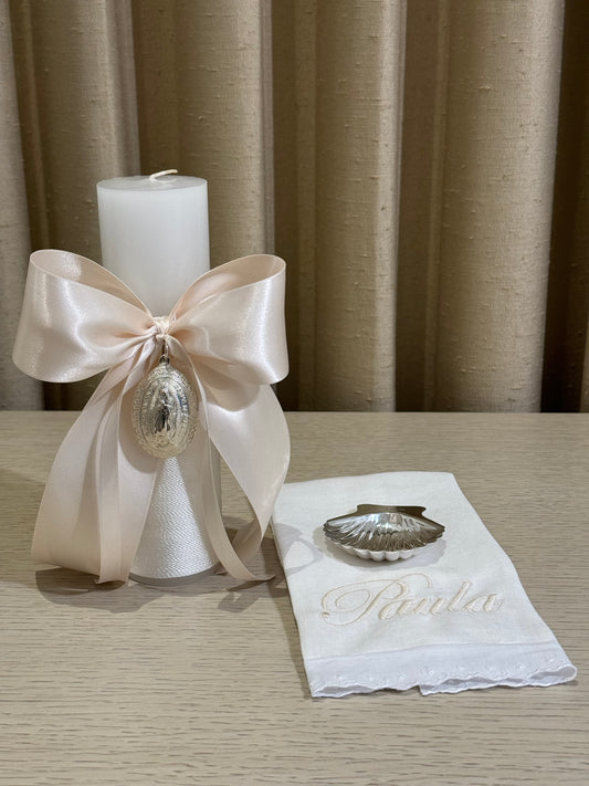 “Mi kit de bautizo llegó más bello de lo que imaginé, con todos los detalles muy bien cuidados y empacado de forma impecable. La personalización de su pañuelo y concha lo hizo aún mas especial”.
