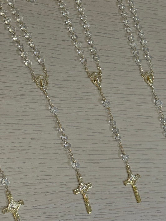 Rosario Dorado con Cuentas de Vidrio y Cristales / Paquete de 10 piezas