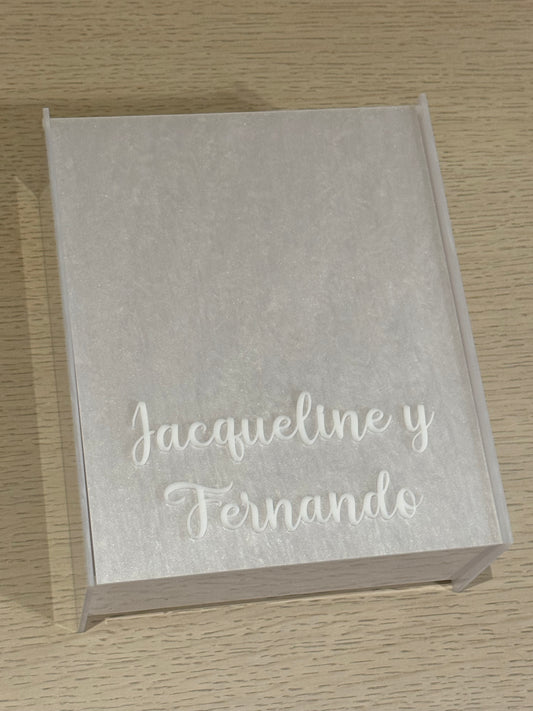 Caja para Set de Bautizo o Primera Comunión/ Blanca Nacarada - Personalizada