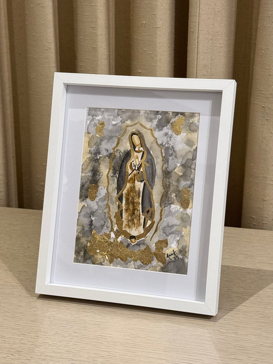Cuadro Virgen de Guadalupe Acuarela con Hoja de Oro