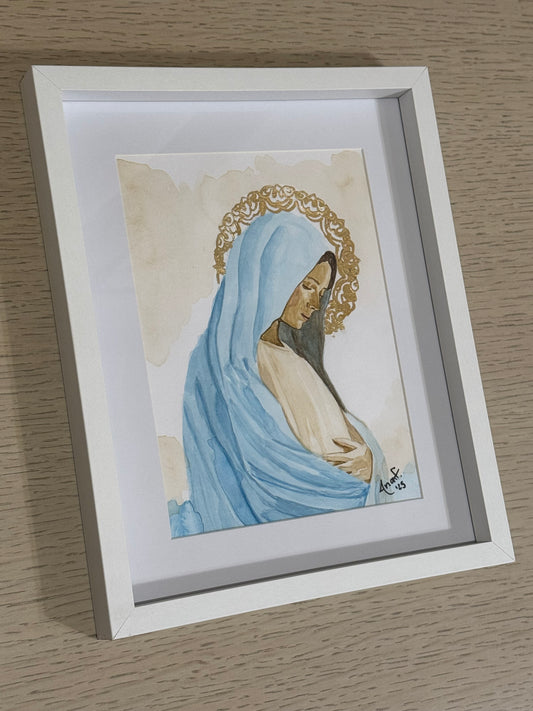 Cuadro Virgen Dulce Espera Acuarela con Hoja de Oro