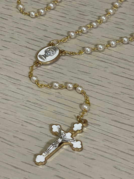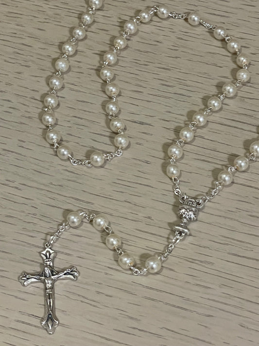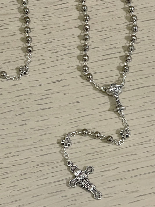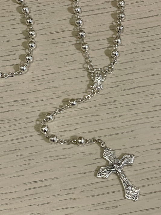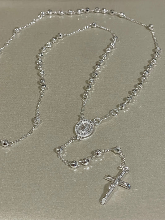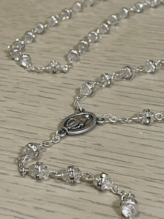 Rosario de Virgen Milagrosa Plateado con Cristales