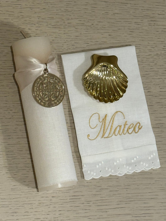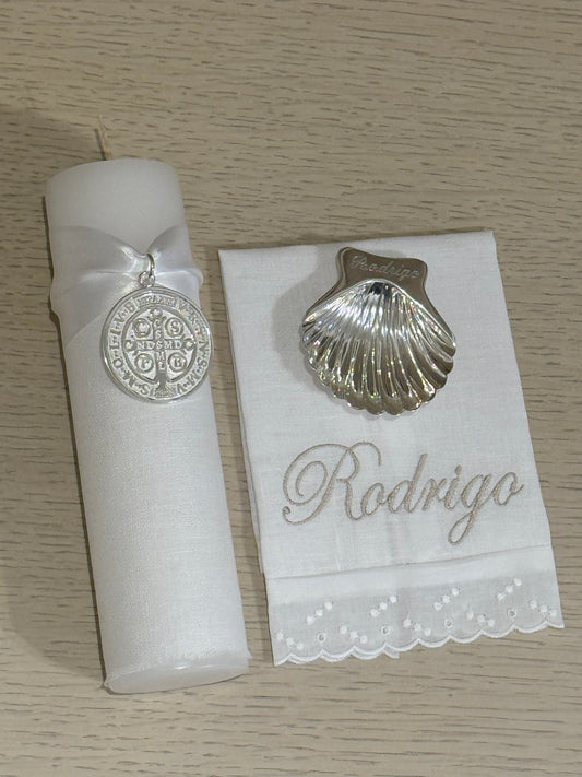 Set de Bautizo con Medalla de San Benito - Personalizado
