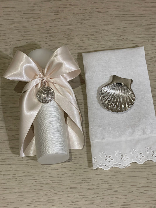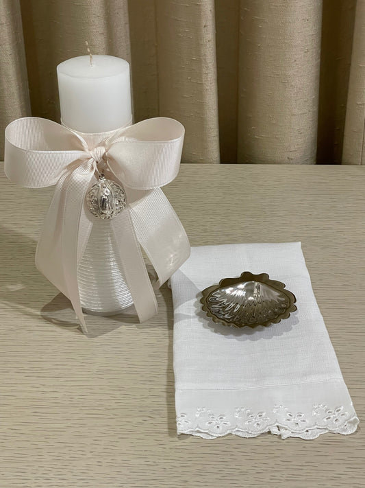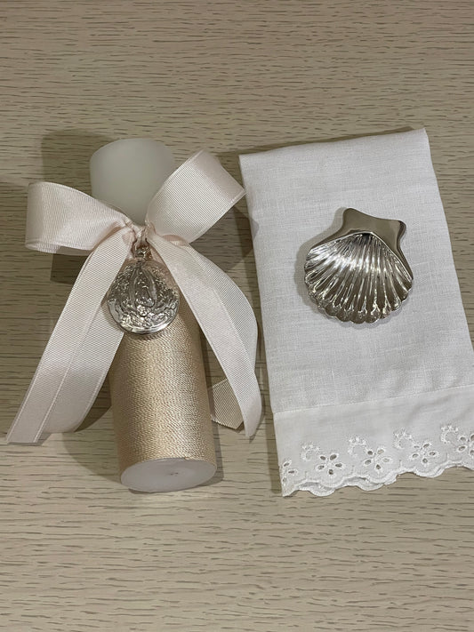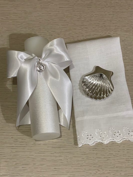 Caja para Set de Bautizo o Primera Comunión/ Blanca Nacarada - Personalizada