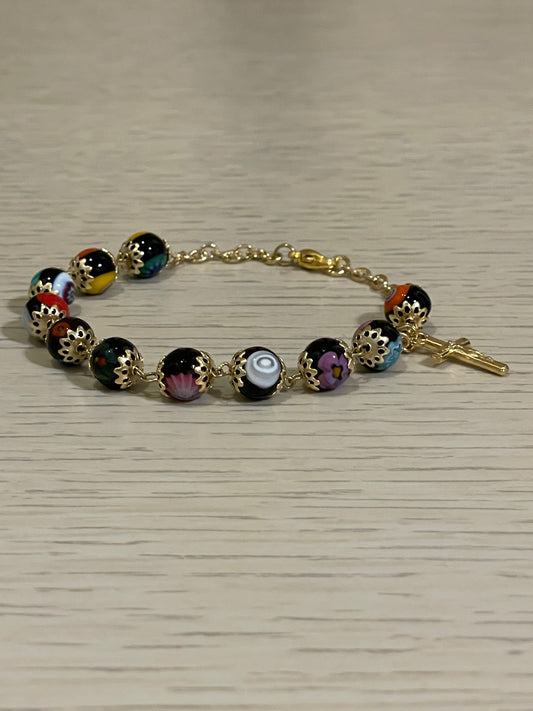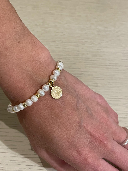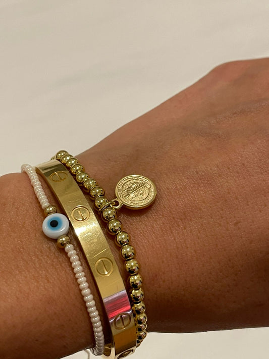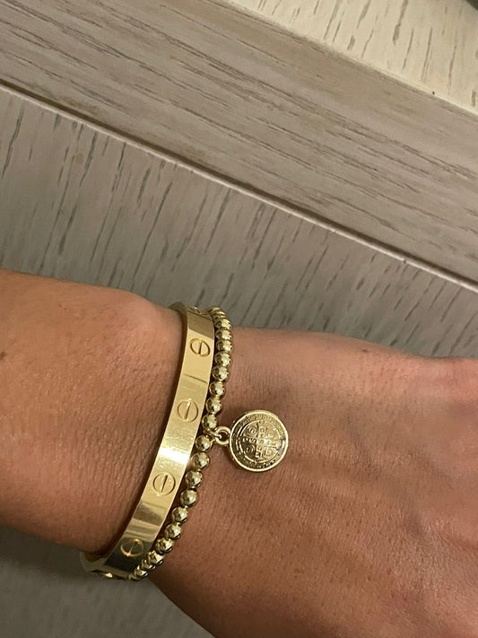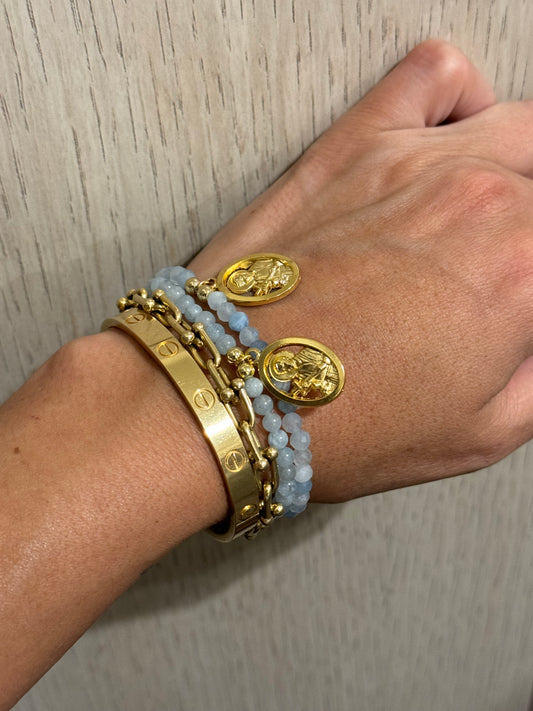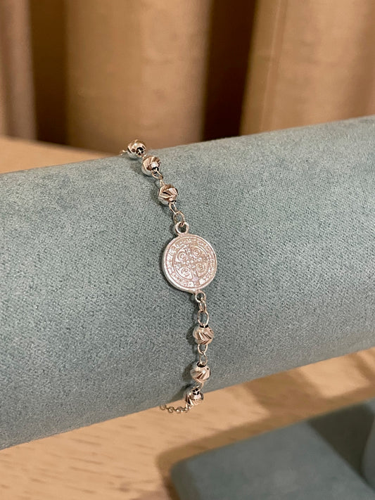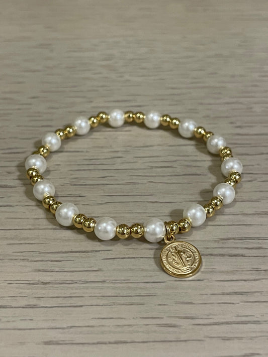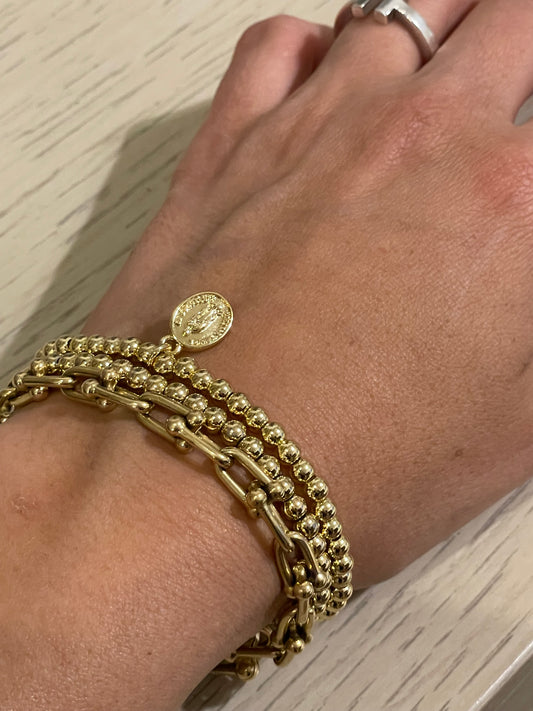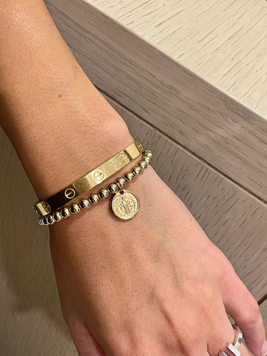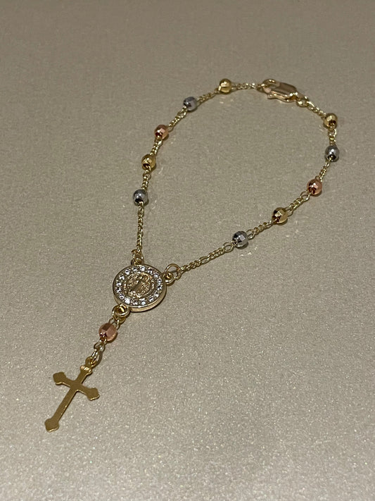 Pulsera Bolitas Virgen de Guadalupe de Chapa de Oro