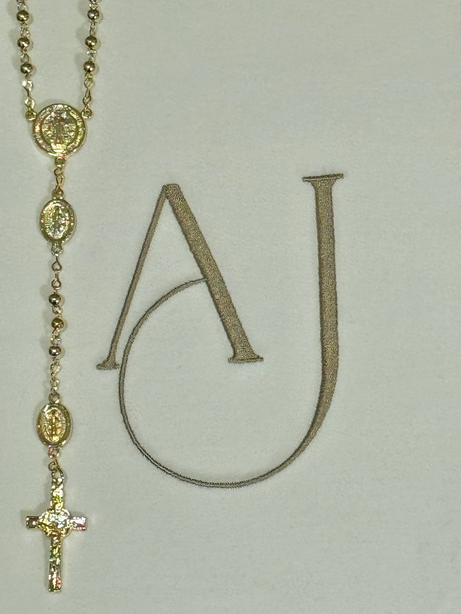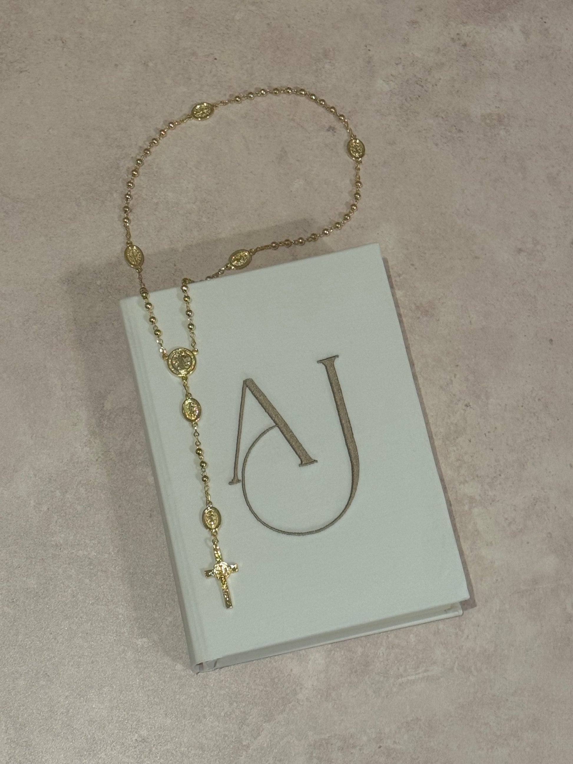 Set de Bodas (Nupcial). Incluye: Biblia forrada en tela y Rosario.